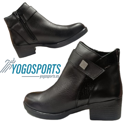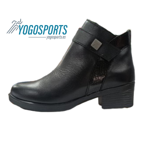BOTIN CASUAL DE MUJER EN PIEL CON TACON BAJO Y ANCHO EN NEGRO DE ZANCADAS