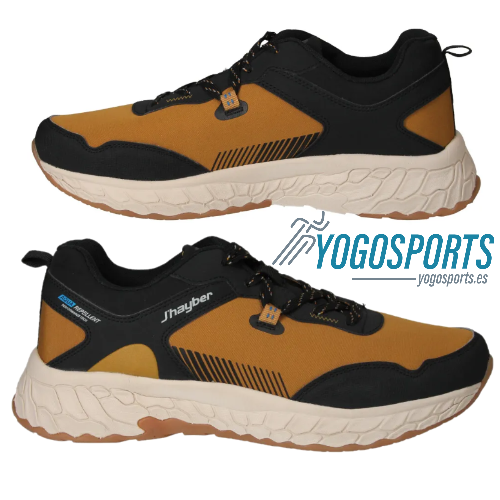 Zapatilla deportiva de montaña para hombre en color camel, modelo Chaparro de la marca J’hayber, una deportiva que combina estilo y comodidad en un diseño resistente, equipadas con un cierre de cordones y plantilla extraíble Comfort Travel, esta zapatilla proporciona un ajuste seguro y confort duradero, pensada para adaptarse a diversos terrenos y ambientes, ayuda a reducir la fatiga del pie, además, es repelente al agua, ofreciendo protección adicional. Ideal para combinar con jeans o looks deportivos, esta zapatilla es perfecta para cualquier actividad.