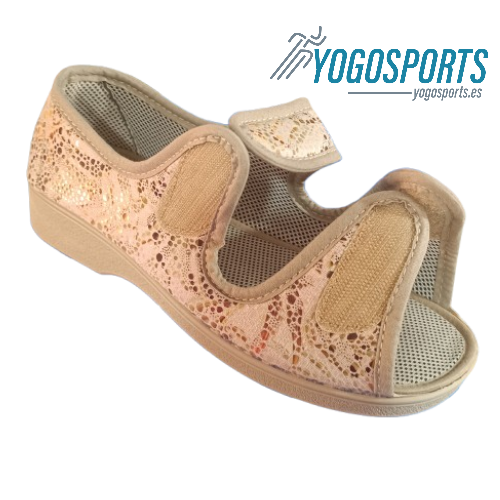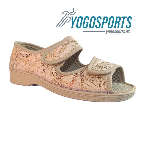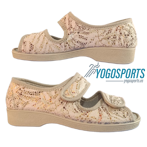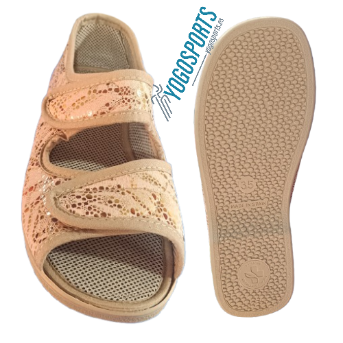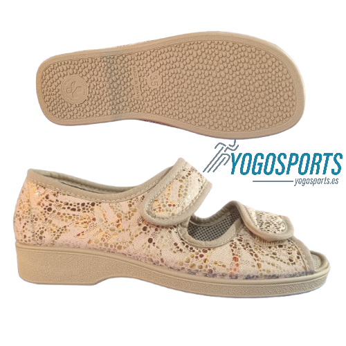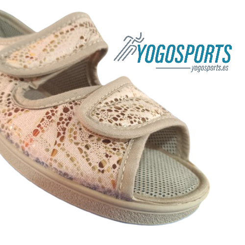 ZAPATILLA ABIERTA DE VELCRO PARA MUJER EN BEIGE CON ANCHO ESPECIAL CAMPELLO